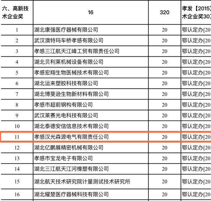 熱烈慶賀孝感漢光森源電氣有限責任公司在政府優(yōu)質企業(yè)評選活動中榮獲高新技術企業(yè)獎、知識產權示范企業(yè)以及工業(yè)企業(yè)發(fā)展壯大獎三大獎項,并喜獲共計26萬元作為企業(yè)持續(xù)發(fā)展戰(zhàn)略資金。